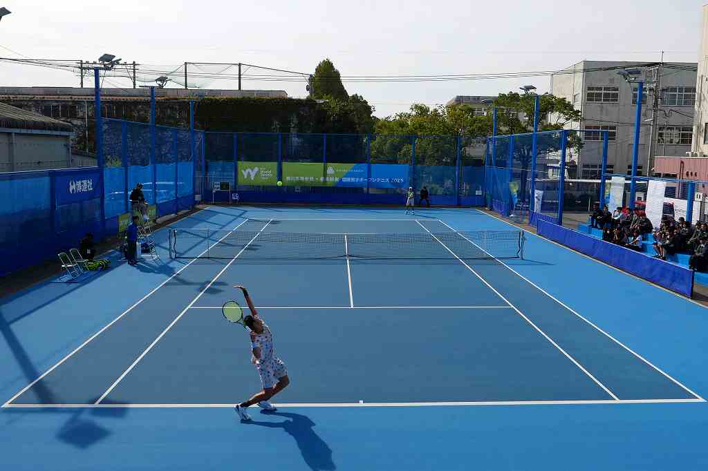 Fukuoka One Health 柳川高等学校×橋本総業 国際男子オープンテニス2025が、柳川高校テニスコートで開催中