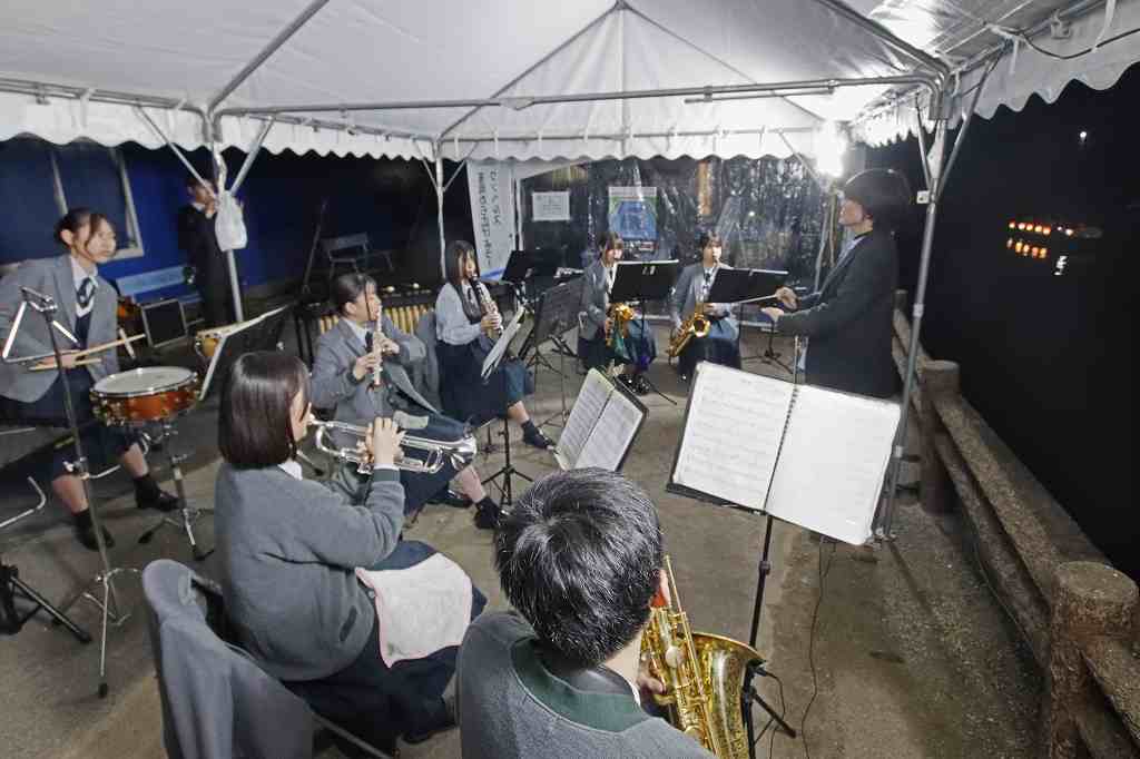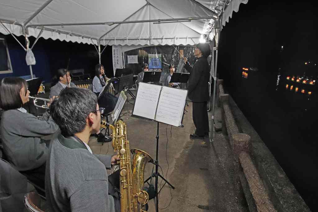 水郷柳川が生んだ詩人北原白秋の命日の11月2日を挟んで11月1・2・3日に行われている「白秋祭」で、11月1日(土)夕刻、柳川を訪れた観光客が乗船する「水上パレード船」に向け、本校吹奏楽部が北原白秋作詞の「この道」「待ちぼうけ」「あわて床屋」「あめふり」などの曲を演奏し、拍手喝さいをあびました!
