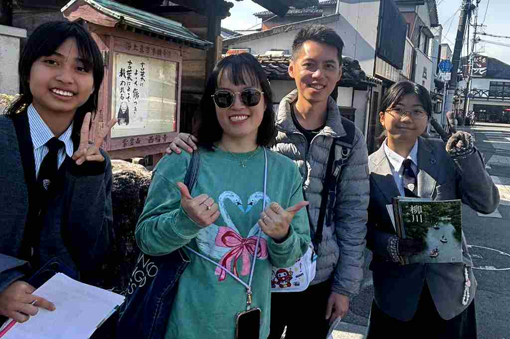 国際科留学生が、柳川を訪れた観光客に、校外学習の一環で日本語で案内をしました